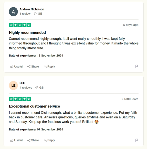 • Our aim is to make it easy for you - you aren't 9-5 so neither are we, feel free to message evenings and weekends.